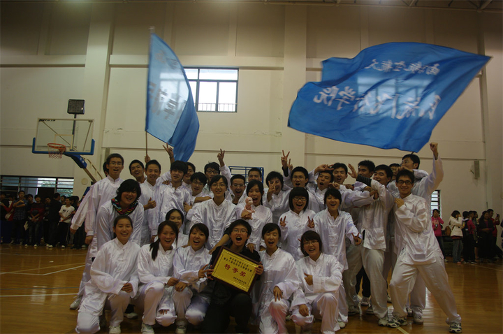 在第50届运动会太极拳比赛中,民航/飞行学院以绝对的优势取得第一名的好成绩,将特等奖收入囊中。