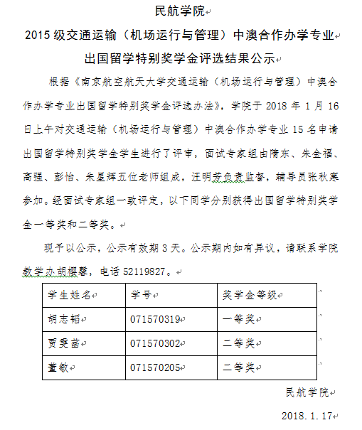 成人动漫 2015级交通运输(机场运行与管理)中澳合作办学专业 出国留学特别奖学金评选结果公示