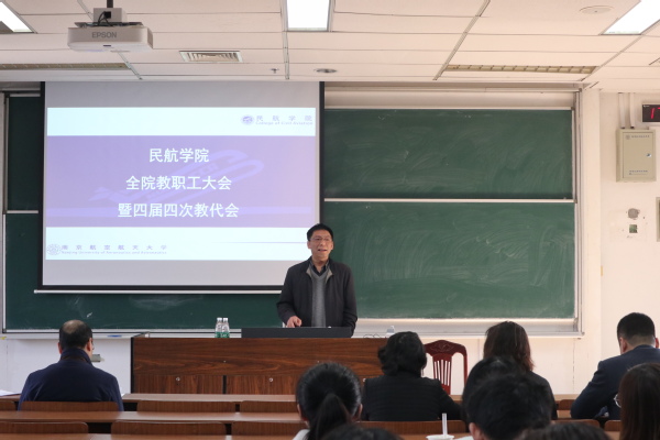 院长胡明华汇报了学院2018年的主要工作成效,2019年的重点工作以及学院2018年度财务情况。他从党建工作,师资队伍建设,学科与科研工作,教学工作,国际合作,飞行办学,学生工作以及董事会、培训工作八个方面全面介绍了2019年学院重点工作。聚焦学院年度工作重点,学院将着力抓好六件大事:首先,加快民航特色办学步伐,这也被列为学校八件重点工作之一,这给成人动漫 全体师生员工带来了极大信心和挑战。其次,本学年学院将进行党委换届工作、深化学院综合改革工作、开展第五轮学科预评估工作、加快土木工程系融入发展以及完成天目湖校区搬迁、新大楼搬迁等大事。他指出,2019年是落实校十六次党代会决策部署、推进“双一流”建设各项任务的攻坚之年,鼓励全体教职工坚持“立足民航”,“服务民航”、“引领民航”,凝心聚力,锐意进取,争取新的突破。