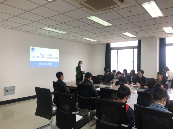 为保证省三好、优干、先进集体的评选公平、公正、公开,在学院党委、团委的统一部署下, 329日下午,民航/飞行学院于将军路校区一号楼19007会议室组织召开省三好、优干、先进集体公开答辩评审会。评审团的成员由三部分组成,分别为专业老师代表吴红兰老师、姜雨老师、陈大伟老师,团委书记肖杰及各年级辅导员,各年级学生代表组成。
