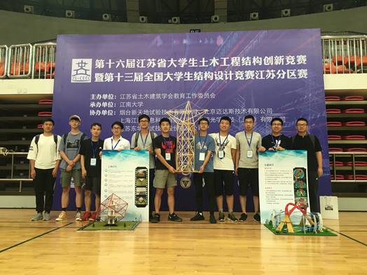 2019年7月6日下午,江苏省第16届大学生土木工程结构创新竞赛暨第十三届全国大学生结构设计竞赛江苏分区赛在江南大学文浩馆落下帷幕。我校3支队伍脱颖而出,获得模型加载组特等奖1项,模型展示组二等奖2项的优异成绩。