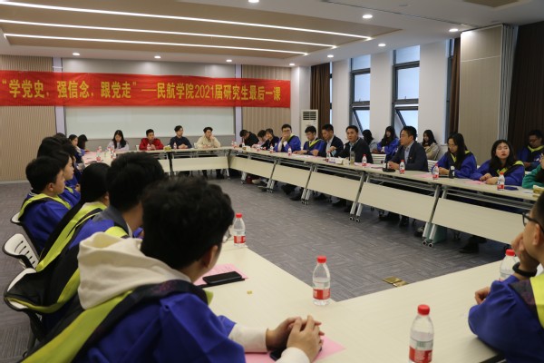随后,侍旭对在场的毕业生党员提出了四点期望:一是要锻炼身体,强健体魄;二是要树立远大理想,致力于民航强国的建设中;三是要养成独立思考的能力,对事物有自己的独立判断;四是要学习毛泽东终身学习的态度,不断提升自我,改变自我。
