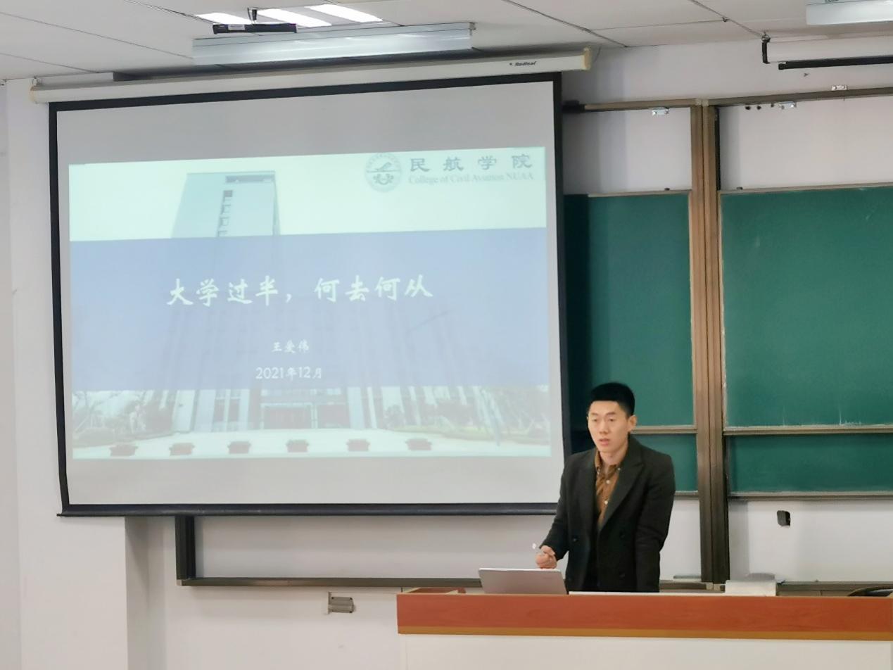 会议伊始,王爱伟就我国高校学生现行就业政策、目前影响就业的利弊因素进行解读,帮助同学们从宏观层面了解总体就业形势。