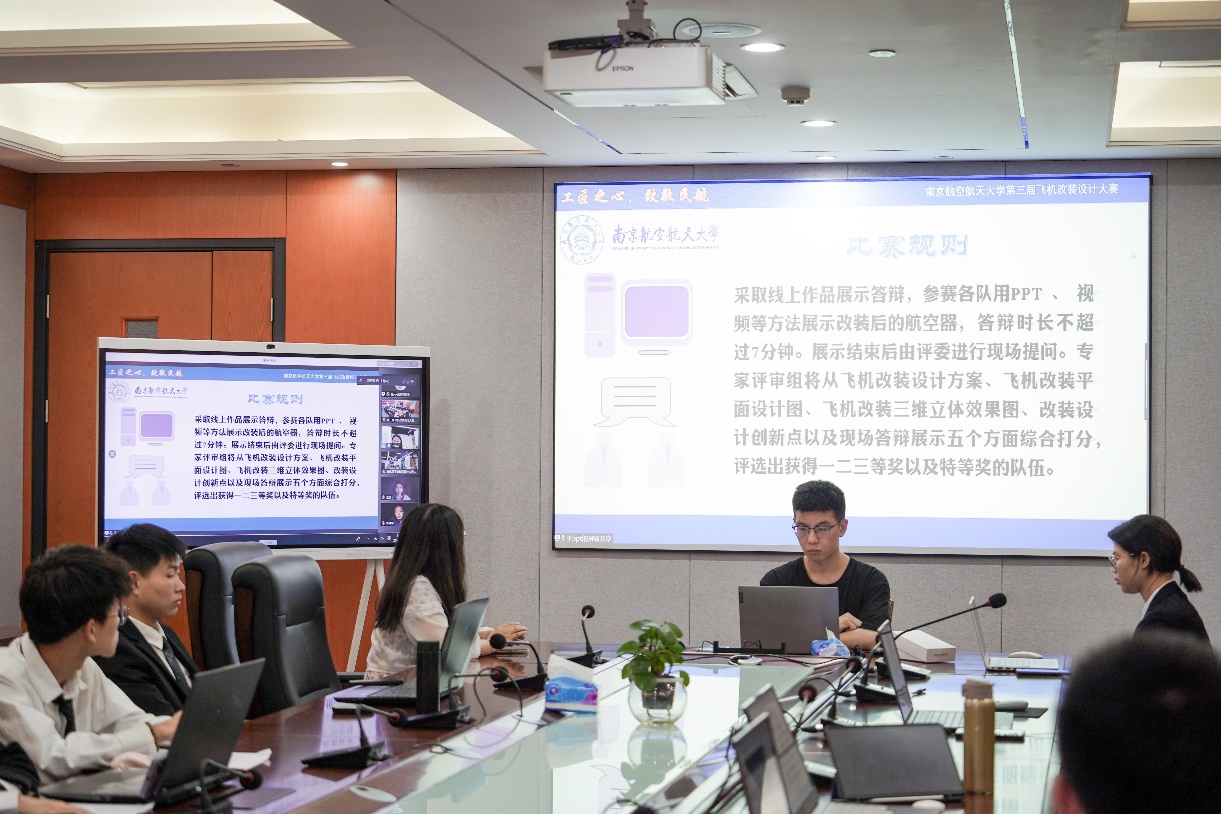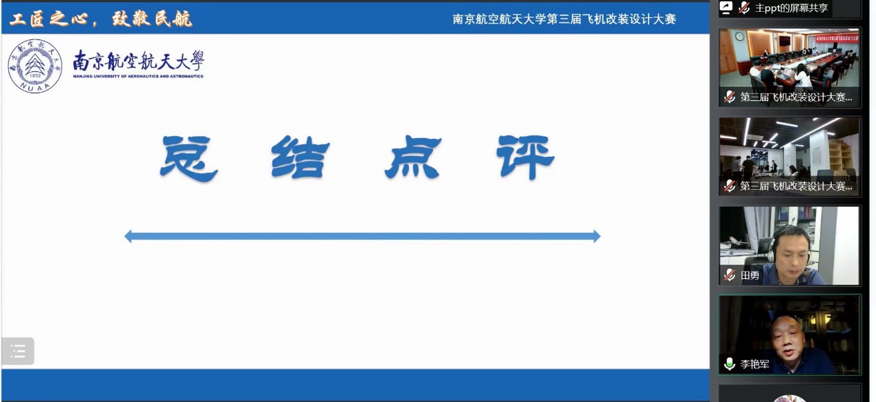 610日晚,由成人动漫 举办的成人动漫 第三届飞机改装设计大赛决赛于天目湖校区成人动漫 科创空间和将军路校区成人动漫 1213会议室同步进行。根据疫情防控的要求,本次比赛采用线上线下相结合的答辩方式。波音公司波音研究与技术部客舱技术研究员龙珑女士,中国民航局结构委任工程代表、山东太古高工赵伟岩先生,中国民航局系统和设备委任工程代表、山东太古高工宋青女士,成人动漫 党委副书记王艳、副院长田勇,工程系主任丁萌、教授李艳军、副主任宫淑丽、教师曹愈远以及成人动漫 团委书记赵慧文和学生代表共同参与此次大赛。