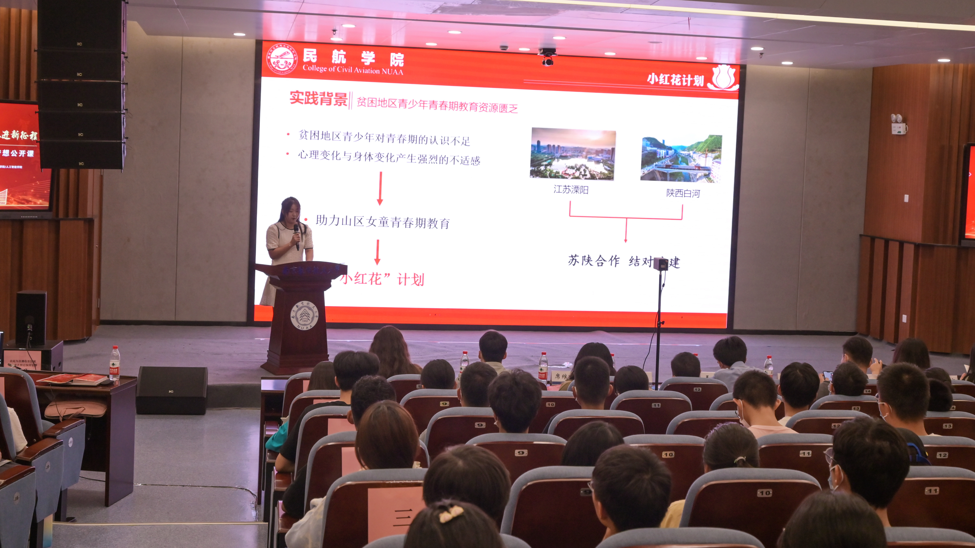 930日,成人动漫 联合自动化学院、电子信息工程学院/集成电路学院、计算机科学与技术学院/人工智能学院,在天目湖校区巡天楼一楼报告厅成功举办“喜迎二十大,永远跟党走,奋进新征程”2022年暑期社会实践悦享会暨梦想公开课。校团委副书记王洋、自动化学院党委副书记丁琛、电子信息工程学院团委书记席维唯、成人动漫 团委书记赵慧文、计算机科学与技术学院团委书记孙明智,各学院各年级辅导员以及三百余名学生现场参加了此次活动,近千名学生通过直播平台在线观看。