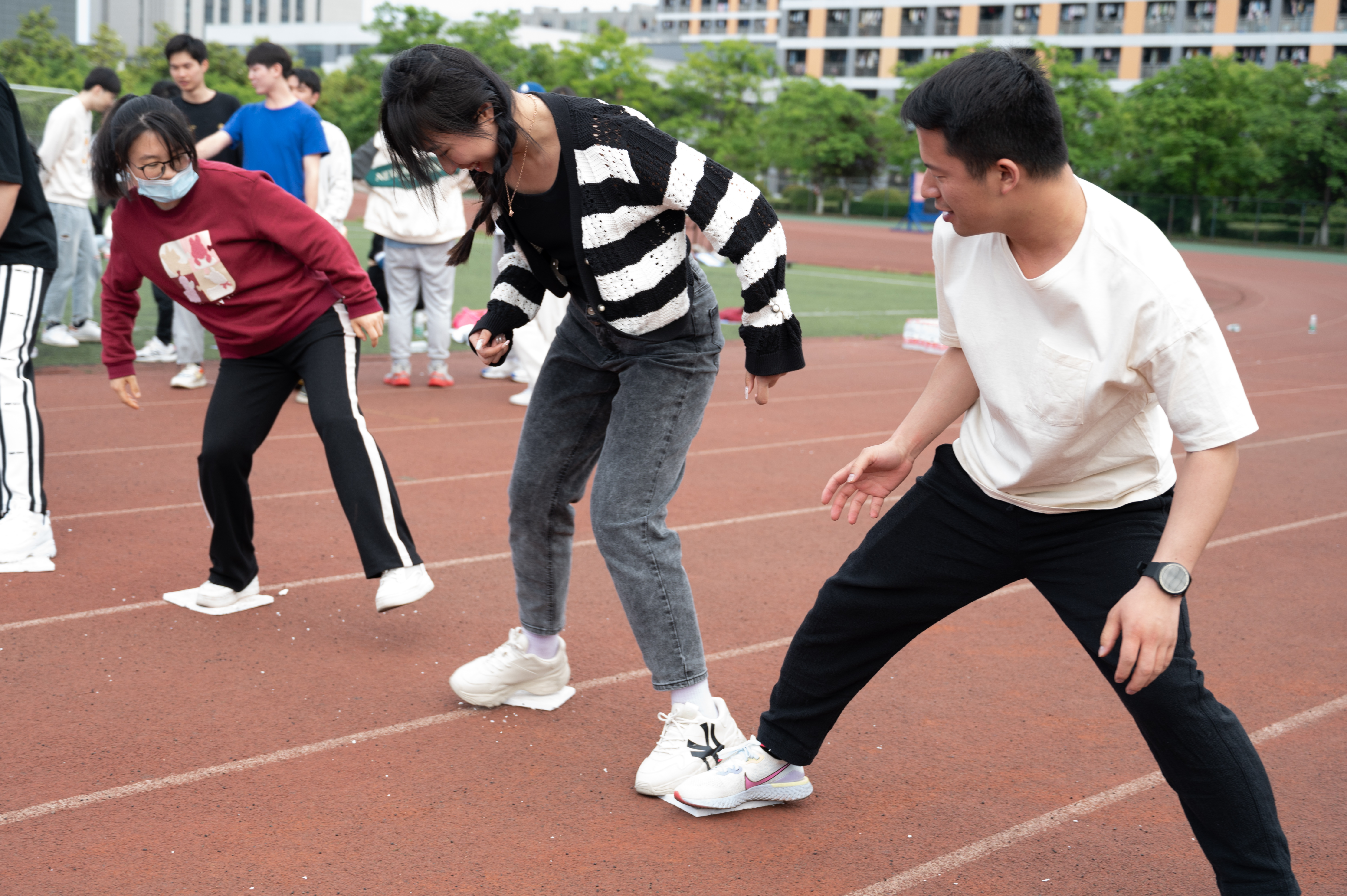 本次运动会共有来自两个学院的16支师生代表队参加。通过“拔河定金”、“六人七足”、“摸着石头过河”、“螃蟹夹球”、“指压板跳绳运球接力”五个团队项目,导师、辅导员、学生一同上阵,师生间互相鼓励,相互配合,齐心协力凝精神,奋勇拼搏展风采,师生情谊与团队默契度共同提升,团队凝聚力随现场热烈气氛不断增强。