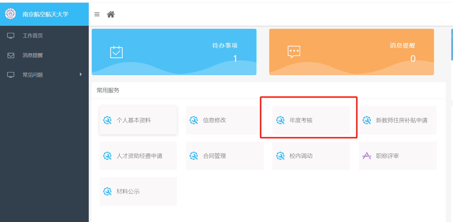 2.教职工需登陆学校的人事管理信息系统//ehr.cranime.com,(//ehr.cranime.com,点击自助服务栏目下“旧版人事系统”),进入“年度考核”模块(12月13日起开放),填写个人年度工作总结,在线提交年度考核并用A4纸正反面打印、签名后交至各系办主任处,由系主任签署单位考核评价意见后,统一交至学院。