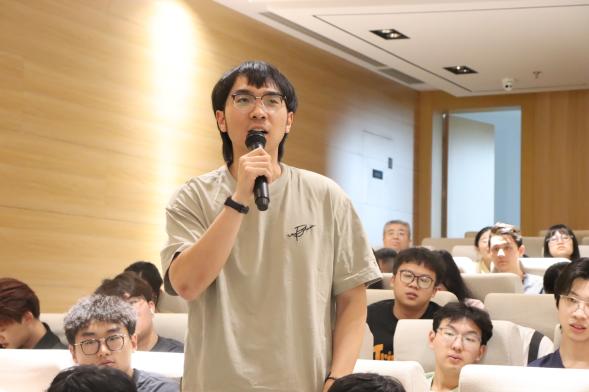 在互动交流环节,同学们积极提问,踊跃参与,周成益一一作出解答,也欢迎更多的南航学子前往东部机场集团参观调研,并勉励同学们克服畏难情绪,多探索,多实践,积极为国家交通强国事业建设贡献自己的青春力量。