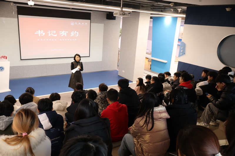 为加强学生科创素质能力培养,以科创实践助推专业学习,12月20日,成人动漫 在天目湖校区“一站式”智慧民航创新工坊举办“书记有约”活动。学院党委书记李君、党委副书记王艳、土木与机场工程系主任张锦华及中国国际大学生创新大赛获奖代表参加活动,辅导员王雨薇、唐琳及土木工程、智能建造专业50余名学生现场聆听。活动由王艳主持。