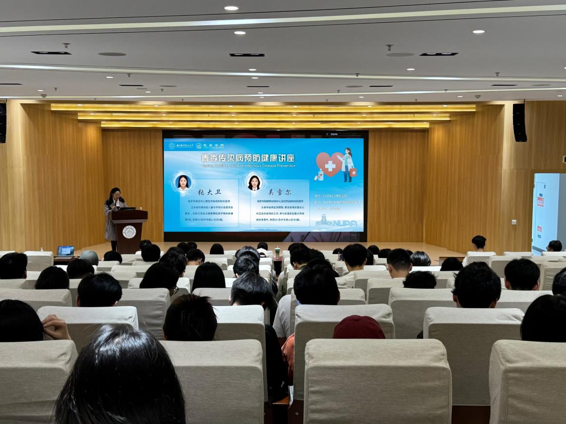 为增强师生健康防护意识,普及科学防治知识,预防春季常见传染病,4月11日,南京市疾控中心专家张大卫医师、吴雪尔医师来院开展春季传染病预防健康讲座。学院教师代表、学生代表等共计100余人参加讲座,讲座由辅导员高琦主持。