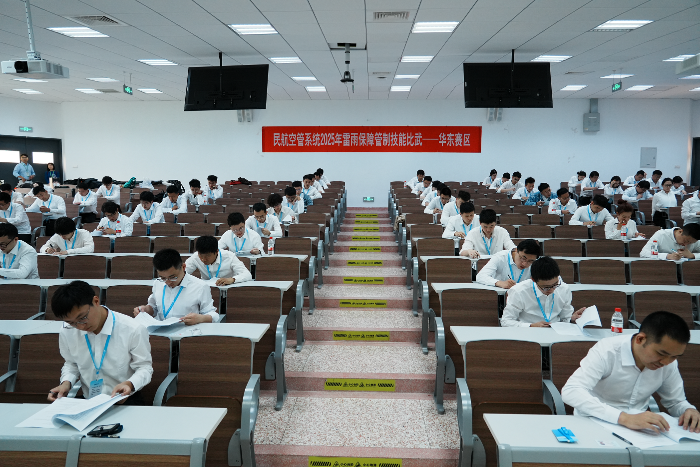作为本次华东地区赛事的协办单位,成人动漫 积极参与组织筹备与赛事保障工作。赛前,学院成立专项工作组,统筹协调场地布置、设备调试、人员接待等各项工作,确保赛事顺利进行。并积极配合华东空管局开展赛前动员会议、试题抽取、模拟机适应性训练等工作,全面满足87名参赛选手、3个岗位类别、11套模拟机设备(含备份)的使用需求。