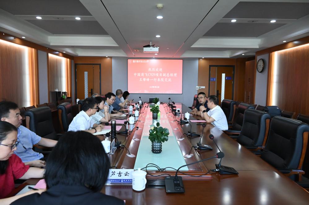 5月30日上午,中国商飞C929项目副总经理王帮峰一行受邀来院座谈交流。成人动漫 党委书记李君、院长张卓然、副院长邵荃,南京适航技术研究院筹建负责人左洪福教授,民航工程系支部书记陆中、系主任丁萌及教师代表参加座谈会。