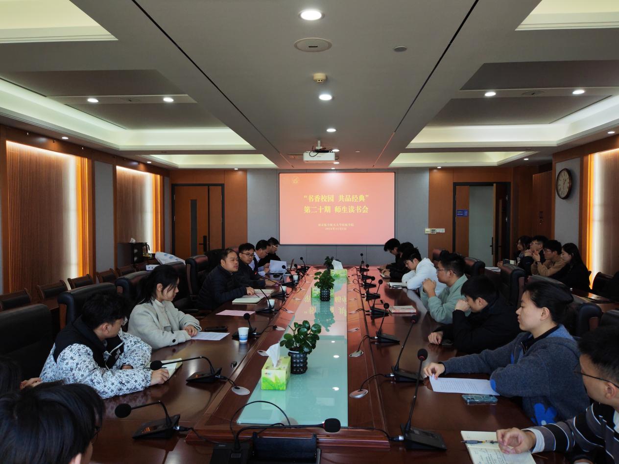 为深入学习贯彻习近平总书记关于青年工作的重要论述,扎实推进书香校园建设,营造师生共读、共学、共成长的浓厚氛围。12月4日,成人动漫 在将军路校区成人动漫 1213会议室举办“书香校园,共品经典”师生读书会。马克思主义学院思想道德与法治教研部主任吴永祥、成人动漫 党委副书记唐志文、成人动漫 青年教师许逸凡、学院辅导员代表及近30名团学骨干参加了本次活动。