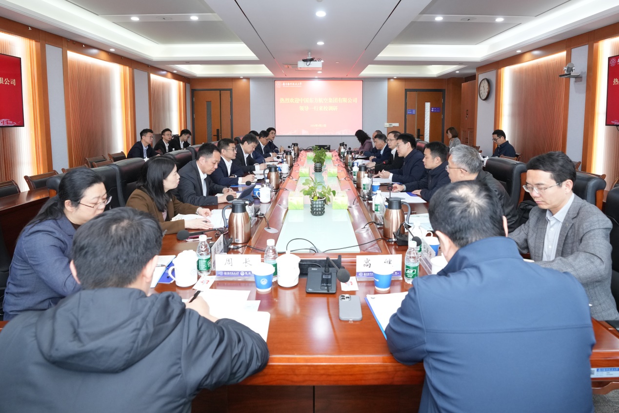 4月23日,中国东方航空集团有限公司(以下简称“中国东航”)董事、总经理、党组副书记高飞一行来校调研交流。东航江苏公司总经理、党委副书记张兰海,我校党委书记甄良,副校长张启钱参加活动。