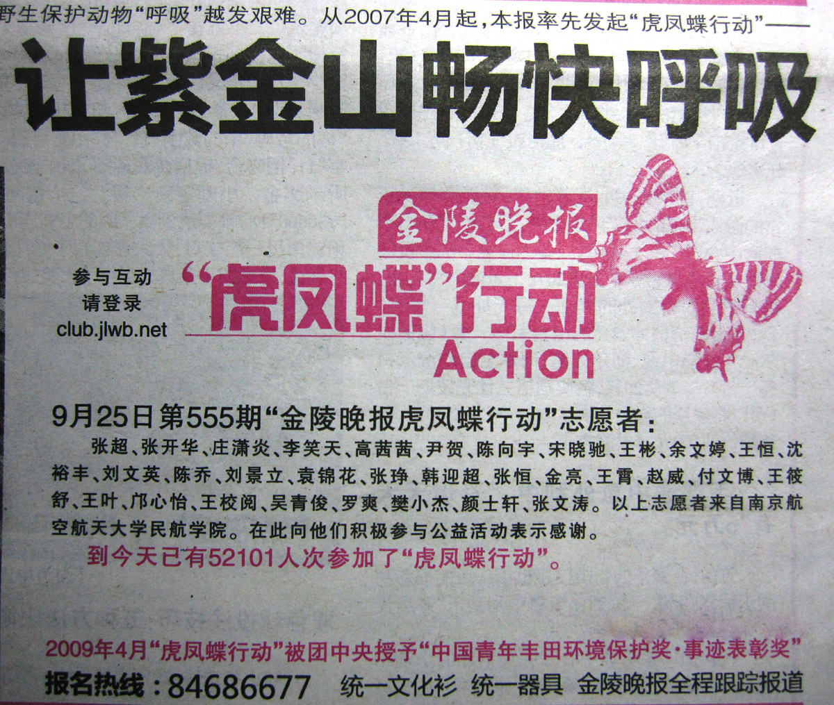 成人动漫 积极参加《金陵晚报》“虎凤蝶”环保活动