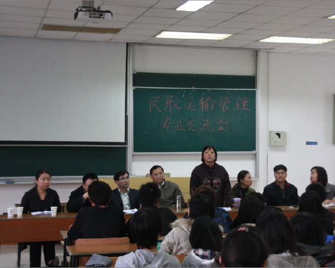 会上,朱金福教授对民航运输管理专业做了总体概况,他指出我国民航业规模在近十年内将会随着国民经济发展快速增长,航空公司、机场则会出现大量人才空缺,而本专业培养了学生对民航交通运输发展的深入了解和研究能力,研究领域涉及运力网络、市场研究、航班计划、收营管理等航空业务的各个方面。可以说,民航运输管理专业前景非常好。同时,朱教授也指出专业学习仍需学生自身的努力,扎实课程学习,存储知识,努力发展为航空领域所需人才。系主任徐月访老师对专业就业前景、考研方向向同学们作了具体介绍。会上,运输管理专业同学积极发言,将自己对本专业的看法一一陈述,会议气氛活跃。接着与会老师分别向同学们介绍专业课程如数据库系统概论、航空运输市场营销的重要性,勉励同学们努力学习,发展自我。指导老师特别指出国家近年来将新出台各种民航领域开放政策,大大拓展了航空领域发展潜能,而运输管理专业学生能充分适应航空运输发展需求,在航空市场各个领域将具有广阔的市场前景。