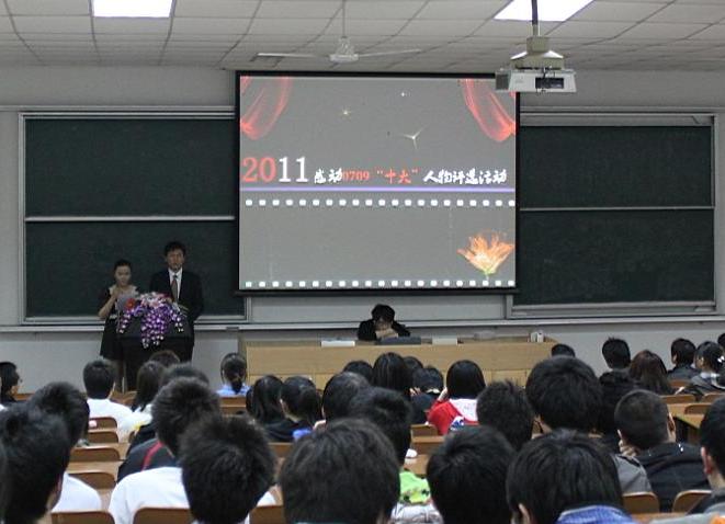 晚会在主持人深情动人的演说中开始。首先,教室大屏幕播放了年级中心组精心制作的感动人物评选视频,介绍了人物评选中相关规则和流程。之后,由年级感动人物评选委员会推选出的八大“感动0709”同学相继上台领奖,并陈述获奖感言。获奖同学来自年级各个专业,他们分别是“赤子之心、雷锋传人”的汪雷同学、“永不言弃、破茧成蝶”的黄扬同学、“困则思变、勤则通达”的张彦同学、“长空铸剑、励志笃行”的韩迎超同学、“韶华有尽、服务无疆”的李海恒同学、“心有猛虎、细嗅蔷薇”的特吉同学、“天道酬勤,厚德载物”的各班班长。这些同学以勤勉奋进、无私奉献的事迹获得了广大学生的认同,朴实无华的获奖演说更是让在场同学感动流泪。0709101班班长李一本的演讲“感动我们的是自己”让晚会气氛达到高潮,同学们争相鼓掌,阵阵喝彩经久不息。