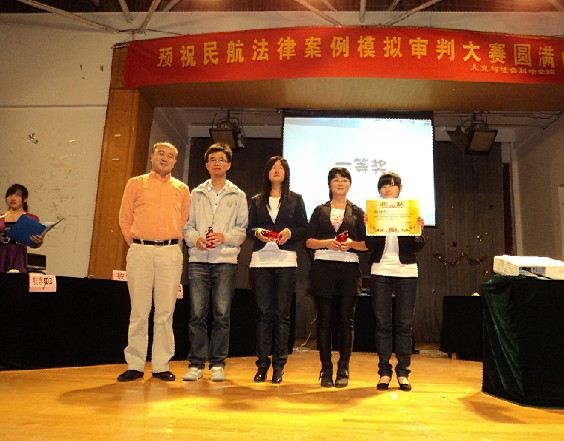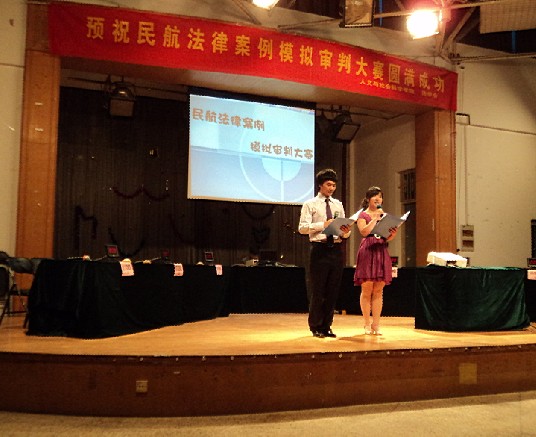 2011年5月22日晚七点整,由民航/飞行学院与人文社会学院共同举办的“民航法律案例审判大赛”在成人动漫 将军路校区大学生活动中心顺利举行。民航/飞行学院党委副书记刘建成,研究生辅导员傅成成以及人文与社会科学学院党委副书记高小泽,团委书记尹春萍,本科生辅导员欧珊、冯岑作为嘉宾出席了此次大赛。