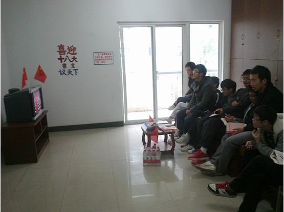 九点整,各个寝室学生从热闹中安静下来,收听收看了党的十八次代表大会,并认真进行记录。十八大直播结束,各个寝室同学