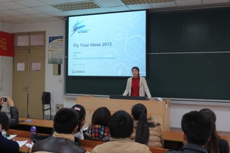 空中客车2013 “让创意展翅高飞”航空创意竞赛开赛在即,空中客车公司邀请全球大学生组队参加竞赛,旨在鼓励大学生们以创新思维构建未来绿色航空工业。在本场论坛中,院研会特意为广大民航学子邀请到了上一届比赛的全球总冠军团队的一员、现成人动漫 研一新生吴贤美同学到场为大家讲述她参加比赛激情昂扬的故事。她向大家讲述了她在空客创意竞赛中收获的经验与切身的体会,并且鼓励大家踊跃报名参加,在实践中创新,在实践中升华。在她的鼓舞和讲述中,同学们都对空客创意竞赛摩拳擦掌、跃跃欲试。