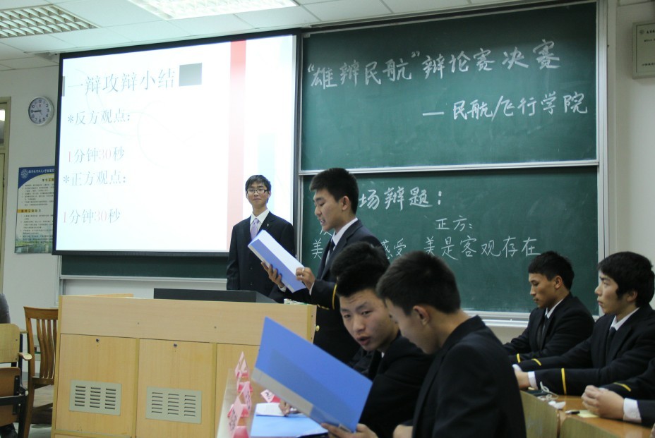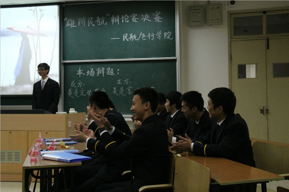 2012年12月16日晚20:30,民航/飞行学院“雄辩民航”辩论大赛总决赛在5103教室正式拉开帷幕。701班及飞行员班的辩手们唇枪舌剑,围绕“美是主观还是客观”的话题展开了激烈的辩论,701班终夺桂冠。