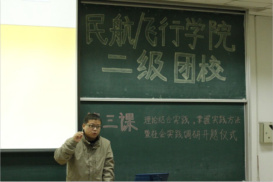 12月20日晚18:30,民航/飞行学院二级团校理论课程第三讲“理论结合实践,掌握实践方法”暨社会实践调研开题仪式在将军路校区6101教室如期拉开帷幕。人文与社会科学学院鲁兴虎老师及部分优秀大二学长参会,全体民航/飞行学院二级团校学员认真听取了社会实践调研的相关理论知识及要求。