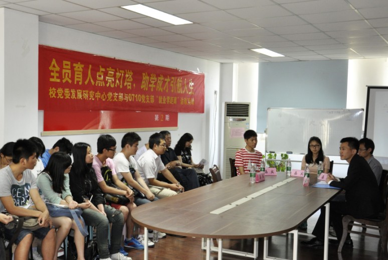 10级学生党支部在301会议室联合举办“就业零距离”访谈活动。出席活动的嘉宾有校党委发展研究中心的黄岚老师和樊小杰老师,成人动漫