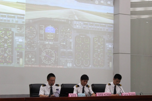 联合决赛中的模拟空管大赛是我院首次举办的空管专业知识竞技比赛,启动于5月初,与模拟飞行比赛一同经过宣讲、初赛、复赛,最终选拔出18名空管专业学生与18名飞行技术专业学生进入决赛。本次决赛创新性的将两项比赛结合,通过空管专业学生与飞行专业学生的现场中英文陆空对话,飞行技术专业学生现场操作模拟机而开展。经过前期抽签,36名进入决赛的同学共分为6组,每组分别进行团队展示、现场操作和答辩展示三个环节,评委根据每组的表现对团队和个人进行打分。为了将比赛举办的公平、专业,真正让空管与飞行专业的同学们感受工作过程中的氛围,比赛全程模拟专业工作环境,并邀请到了海南航空公司机长田素成先生,江苏空管分局南京进近管制员张屹堃先生,成人动漫