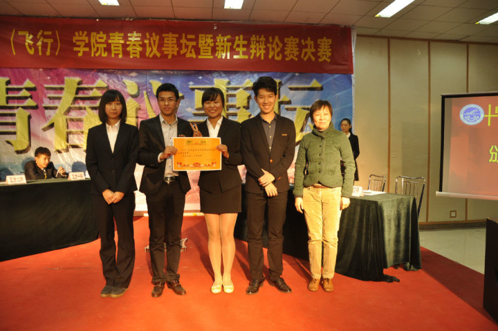历经激烈的初赛、复赛,八名脱颖而出的精英辩手展开了最后的角逐。辩论赛上,正反方辩手将自己生活中的所见所闻与专业知识相结合,针对昆明机场旅客滞留问题进行了深入的探讨,各抒己见。正方认为应对公司负责,持续延误航班保全公司利益,而反方则认为应对旅客负责,及时取消航班维护旅客权益。双方辩手你来我往,针锋相对,大有舌尖舞动乾坤之势。正方一辩有条不紊,思路清晰,总能在关键时刻力挽狂澜;而反方二、三辩语速惊人,反应灵敏,多次引发观众拍手叫好。经过一个小时的唇枪舌战,反方代表队以咄咄逼人的气势与缜密的思维,最终斩获新生辩论赛决赛总冠军。正方一辩盛嘉名同学和反方二辩李唐同学也以他们精彩的表现征服了在场的评委和观众,赢得了“最佳辩手”的荣誉称号。