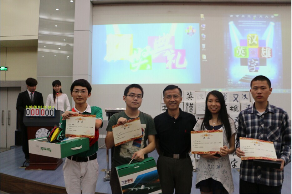 一段精彩的暖场视频拉开汉字英雄决赛的帷幕。主持人简单地介绍赛制后,由各个学院学生组成的6支团体队伍以及8名个人选手开始了最终的角逐。决赛分为三个回合“初出茅庐”、“群雄逐鹿”和“问鼎巅峰”进行,随着上下半区两场团体半决赛的开展,比赛也高潮迭起。场上选手斗智斗才,场下亲友团也不断出谋划策,一个个生僻字的出现,让场下观众连连拍手称赞。从根据字音、部首写字题,到趣味横生的字谜,一场汉字饕餮盛宴让在场所有人领略了中国传统文化的博大精深。选手们与评委老师也不时互动交流,精彩纷呈。最终,来自民航/飞行学院的“三人行”团队力压群雄,勇摘团队桂冠,能源与动力学院的刘儒骏同学获得南航“汉字状元”的称号。