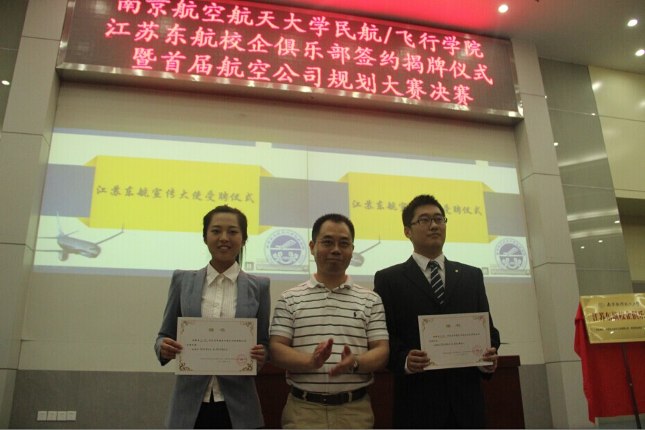 2014年6月13日晚上7点江苏东航校企俱乐部签约揭牌仪式在我校将军路校区一号楼四楼报告厅隆重举行。出席此次揭牌仪式的有江苏东航人力资源部规划配置部管理主管王心磊女士、飞机维修部副总经理兼总工程师肖志华、飞行签派分部高级经理杨加勇先生、飞机维修工程部工程师陈勇先生、人力资源部王树红女士,校学生处副处长许爱华老师、成人动漫 党委副书记宋凯老师、成人动漫 交通运输工程系主任曾小舟老师、成人动漫 交通运输工程系吴薇薇老师。参加此次揭牌仪式的还有校企俱乐部首批会员以及来自民航/飞行学院的老师与同学。