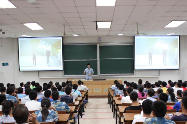 一段与时代接轨、展现成人动漫 二十年快速发展的视频拉开了见面会的序幕。首先,学院党委副书记宋凯代表全院师生对2014级新生表示了热烈的欢迎,并致以深刻而感人的期许,表达了对同学们在民航道路上心怀梦想、坚毅前行的殷切希望。随后,成人动漫 优秀学生代表高云蕊、罗皓巍同学分别从大学学习与素质能力提升两个方面与新生进行交流,为他们的大学道路构筑了清晰的方向,当罗皓巍展现出一张奥委会主席巴赫与他的合影时,全场抱以热烈的掌声,这掌声既为学姐学长的精彩发言,也为自己即将开启的美好大学。接下来,新生代表沈天如上台发言,表达了对自己大学的憧憬,也坚信自己能度过完美的大学生活。