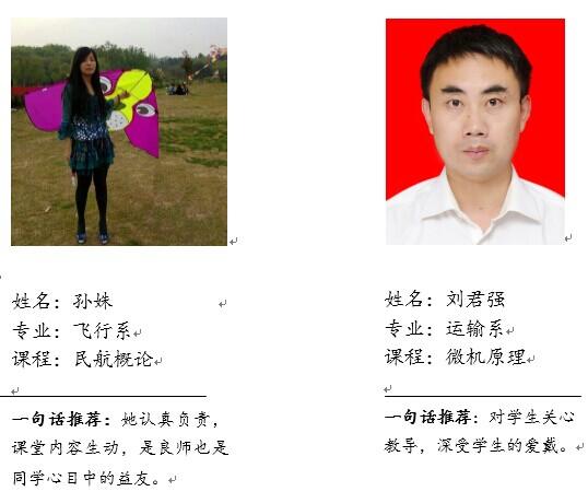 以上为当选首届民航/飞行学院“我心中的好老师”的所有老师,他们对同学们的辛勤付出得到了广大同学们的支持与肯定。同时,其他老师的辛劳与汗水也是有目共睹,所有老师为了民航/飞行学院拥有更加美好的明天孜孜不倦。希望在接下来的日子里,学院学习风气日益浓郁,课堂氛围逐步活跃,师生之情更加深厚,民航学子在各位老师的培育下定能为祖国的民航事业大展拳脚。