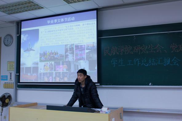 会议第二部分为主席团的整体工作汇报,主席赵逸群就此做了深刻的年度工作总结。2014,成人动漫 举办了一系列丰富活动:在上半年,主要开展了以研究生毕业季展望未来,就业培训,素质能力拓展,及暑期研究生社会实践等为主题的活动;下半年,主要开展了新生系列活动,学术沙龙,素质能力培训沙龙。其中,重点包括别具一格富有民航特色的“开学第一课”,青年教授论坛,以及研究生国家奖学金系列活动,在举办国家奖学金获得者风采展示活动时坚持“闪耀风采展示与优秀能量传递”的格调,不仅见证了优秀的高年级研究生的科研成果,更是为研一新生追求卓越树立了榜样。这一年,成人动漫 在策划举办本院活动的同时,也积极筹备参与校级活动,其中剧目《平凡之路》斩获“第二届研究生音乐情景剧大赛二等奖”及“最佳指导奖”,在“枭龙杯”研究生学术论坛中,邢健同学获得“学术十佳”提名,张马兰同学获得“学术十佳”荣誉称号。与此同时,在党支部建设方面,也取得了骄人的成绩,荣获“优秀硕博实践团队”,“党内优秀主题教育活动”,“先进基层党支部”等荣誉称号,另外,我院13,14级党支部本学期共有三项党内主题活动已得到学校立项。