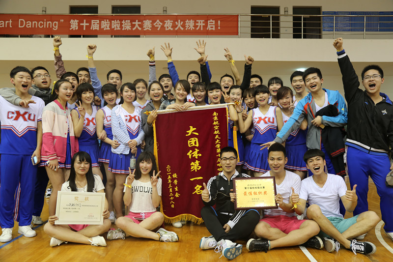 “因为团结,所以强大。”2015年3月28日晚,第十届啦啦操比赛在体育中心篮球场隆重举行,各学院老师、学生代表出席此次大赛。在激昂的气氛中,民航/飞行学院的骄子们不辱使命,囊括了大、小团体桂冠以及最佳组织奖,创下史上最佳成绩。