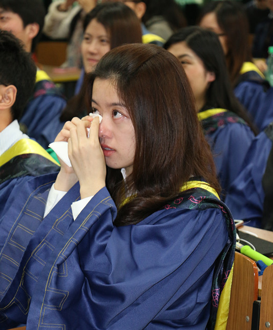 当学生代表梁斌斌毕业发言时,字字发自肺腑,句句充满感情,情到深处,激动的泪水扬洒的不仅是对青春的回忆,更是对陪伴自己的老师,同学,南航的不舍之情。