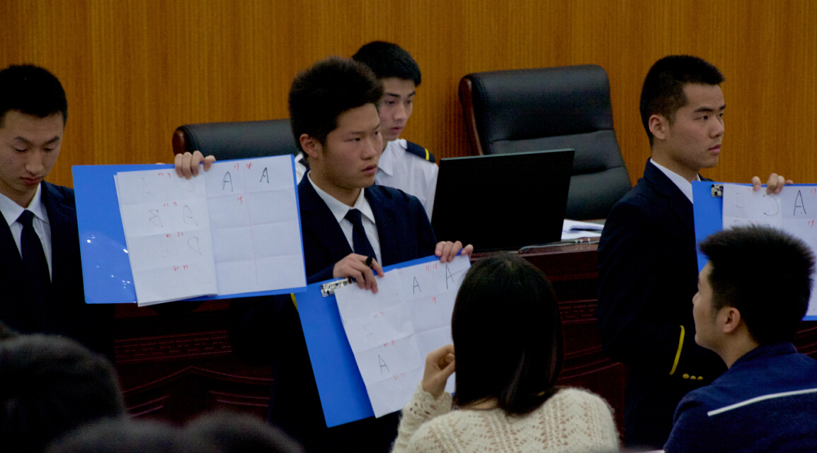 此次飞行知识竞赛分三个部分——初赛、复赛和决赛。初赛为笔试形式,由全体飞行学员参与闭卷考试。试题来源为专业课程中的相关知识点。笔试后根据得分由高到低选取24个选手进入复赛。复赛分为三组进行,每组8名选手作答大屏幕上的19道选择题和1道抢答题。复赛得分最高的8位选手进入决赛。决赛环节为选手作答大屏幕上20道选择题和10道抢答题,并按照最终得分排出名次。最后,辅导员为进入决赛选手颁发获奖证书和奖品。
