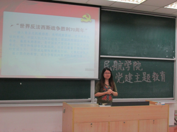 5月20日,成人动漫 研究生党支部在将军路校区6号教学楼举办了“勿忘国耻,接力前行”的专题沙龙,铭记这段沧桑历史,缅怀时代革命英雄;展望未来,接力前行。沙龙主要围绕“铭记历史,直面真相”、“国力强盛,民航来促”、“军事天地,聚焦阅兵”三个主题开展。
