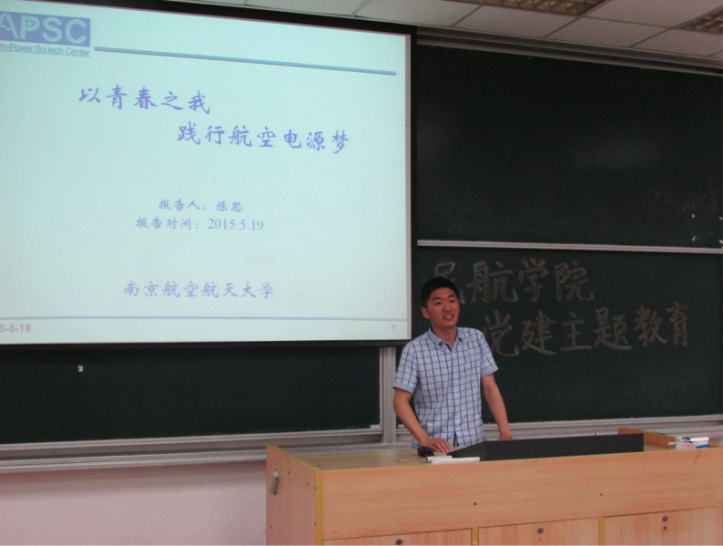第二部分是由13级和14级支部的党员和积极分子代表分别上台汇报学习心得。来自13级支部交通运输专业的陈思同学就“以青春之我,践行航空电源梦”分享了自己的一些感想。他认为我们应该感到庆幸,因为在这所以航空为背景的大学,我们有更多更直接的机会去实践中国梦,以后我们工作的每一天不光是为了自己温饱,更重要的是,我们能真切地感受到,自己工作的每一个小时,都在为增强国家的综合国力而奋斗,这份骄傲可能是其他行业不能奢望的。来自14级支部空管专业的王媛同学向大家讲述了她对“人生的扣子从一开始就要扣好”的理解,通过自己学习的亲身经历,给习总书记朴素又生动的比喻增添了很多独特的见解。这些同学的心得分享也会在后期由党支部整理成稿,在我们成人动漫 研究生联合党支部的微信公共平台的#学习天天见#专栏向大家推送。
