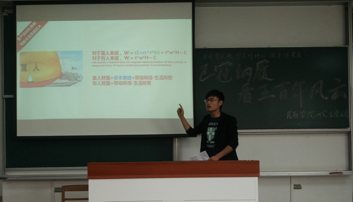 从十六世纪空想社会主义的诞生到今天,世界社会主义经历了五百年的发展。这五百年间,风云变幻,社会主义运动有辉煌,也有挫折。朱赫老师首先由现实问题引出大家对社会贫富差距的看法,以及造成这种两极分化的内在原因,启发大家深入思考了“什么是共产”、“为什么要共产”这两个问题,进而引出马克思主义中对私有制、剥削等概念的论述。朱赫老师讲授的过程中紧紧结合了当前社会上出现的热点问题,引起了大家浓厚的兴趣与广泛的共鸣,大家也更深入理解了马克思主义在当前时代中的重要意义。