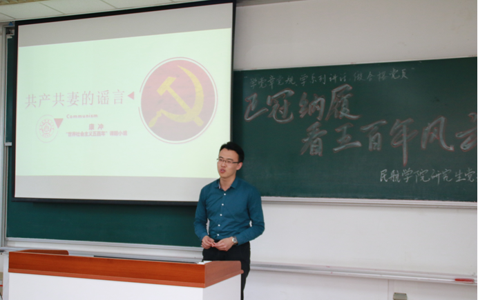 为贯彻落实“学党章党规、学系列讲话,做合格党员”学习教育的要求,加强学生党员的自我修养水平,充分发挥学生党员的先锋模范带头作用,4月18日下午,航空宇航学院朱赫老师、成人动漫 康冲老师受邀为成人动漫 研究生党支部全体党员讲授“世界社会主义五百年”,与大家一起回顾世界社会主义运动的历史插曲,追问马克思,细说共产主义。