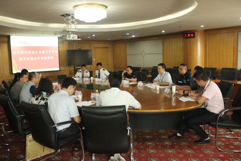 8月12日下午,考察团来到致力打造通航品牌的重庆通航集团,考察团实地参观了重庆通航集团公司,并通过介绍了解到公司基本情况、发展规划、人才现状;座谈会上,双方还就未来对飞行、机务等专业的人才培养、飞行培训合作、委托培养、公司员工继续教育等情况进行沟通和交流。