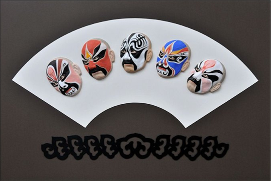 走近细看不难发现这些脸谱作品都是立体的,但又不同于传统的石膏模子,而是薄薄的一层立体壳子,轻盈而逼真,加上眼神光的点画绝妙,简直就是舞台上真人脸谱的具体而微者!霎时间生、旦、净、末、丑呼之欲出,一场场好戏就在咿咿呀呀的吟唱声中出将、入相。