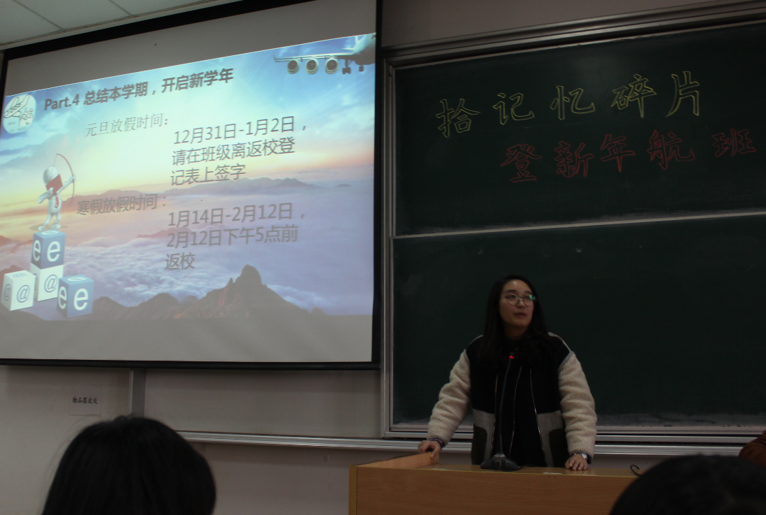 12月29日14时30分,成人动漫 2016级在4202教室举行了以“拾记忆碎片,登新年航班”为主题的期末分享总结会。本次大会回忆感悟了本学期年级活动的精彩瞬间,反思总结了学习工作的优异或不足,并对下个学年寄予美好希冀。