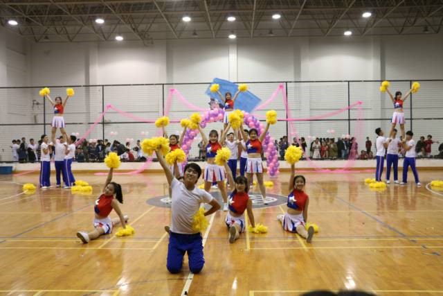 就在大家还沉浸在刚刚小团为大家带来的震撼表演时,期待已久的我院啦啦操大团体闪亮登场了。看他们拿着花球的手划出一道道优美的弧线,和着全部由自己编剪的音乐,跳着自己编选的动作,伴随着极富感染力的笑容,给比赛带去了一次又一次的高潮。拉丁,劈叉,托举,下腰,踢腿,各种难度动作更让这一套啦啦操舞蹈耀眼的挪不开眼!最后,我院搭出了三个完美的“人梯”,更是将全场比赛气氛引领到了最高点。最终,我院啦啦操队获得了打团获得了大团第二名,小团第二名以及最佳团队精神奖的好成绩。