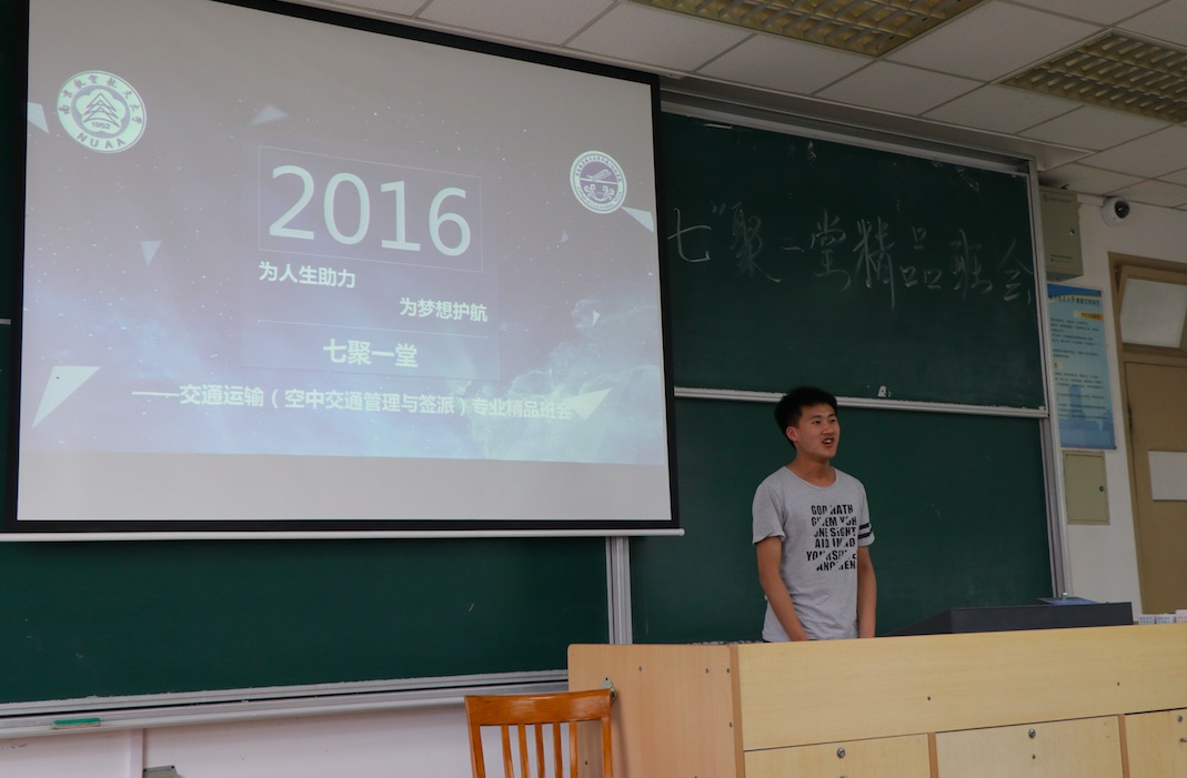 班会最后,班长张鑫燚同学为我们介绍了几个不错航空公司,机场和国外著名航空管制大学作为毕业去向,使大家从大一就树立目标,让大学的路不再迷茫。