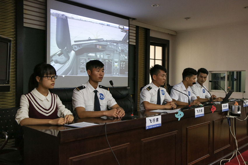 陆空对话环节,五支团队分别围绕“右襟翼控制失灵,尾翼突然失控,前方突遇雷云,方向指示失灵”等飞行故障,通过管制员与飞行员有效配合,完成一次完整的起飞和降落。