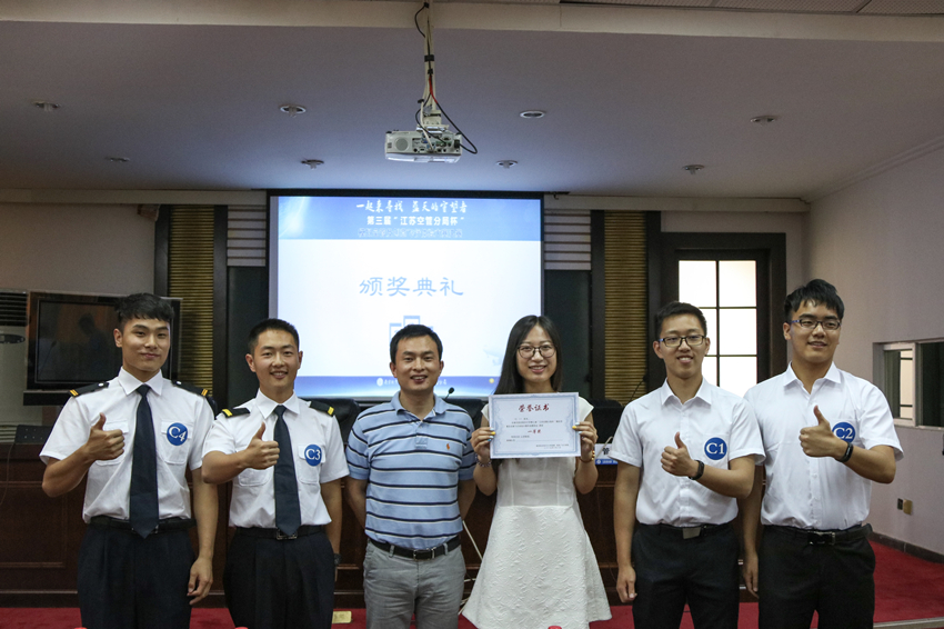 最终,“top gun”团队摘得桂冠,荣获一等奖; “CAVOK”团队和“威震天”团队荣获二等奖; “翼下之风”和“空军七号”团队荣获三等奖;“top gun”团队的石明钊和杜昭辰选手分别荣获“最佳管制员”、“最佳飞行员”称号。