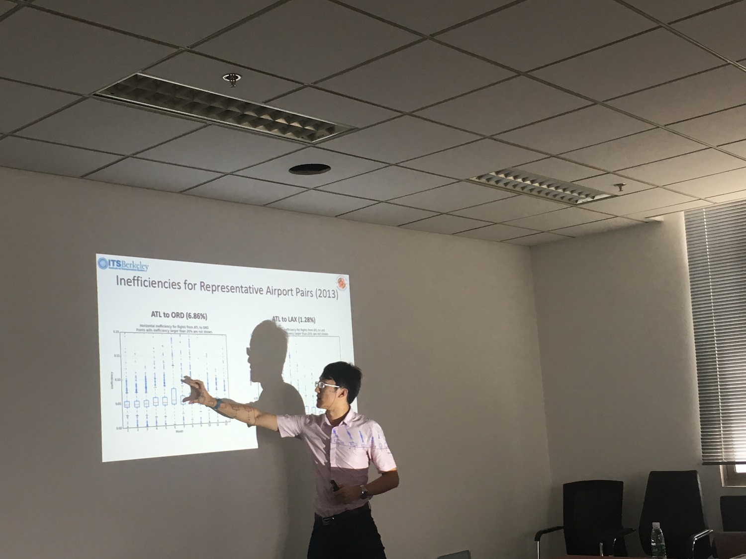 6月9日下午2点,美国加州大学伯克利分校刘育麟博士在将军路校区1号楼1207会议室做了题为“Causal Analysis of En Route Flight Inefficiency in the US”的学术报告。