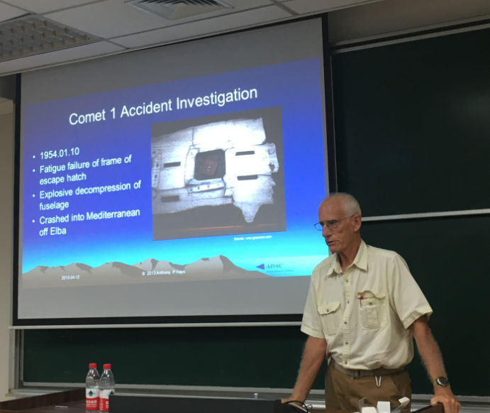 2017年10月20日下午2点,加州大学长滩分校Anthony P. Hays教授在将军路校区1号楼10107教室做了题为“Aircraft Accident Investigation”的学术报告。报告会由我院乌克兰籍Tiniakov Dmytro副教授主持。